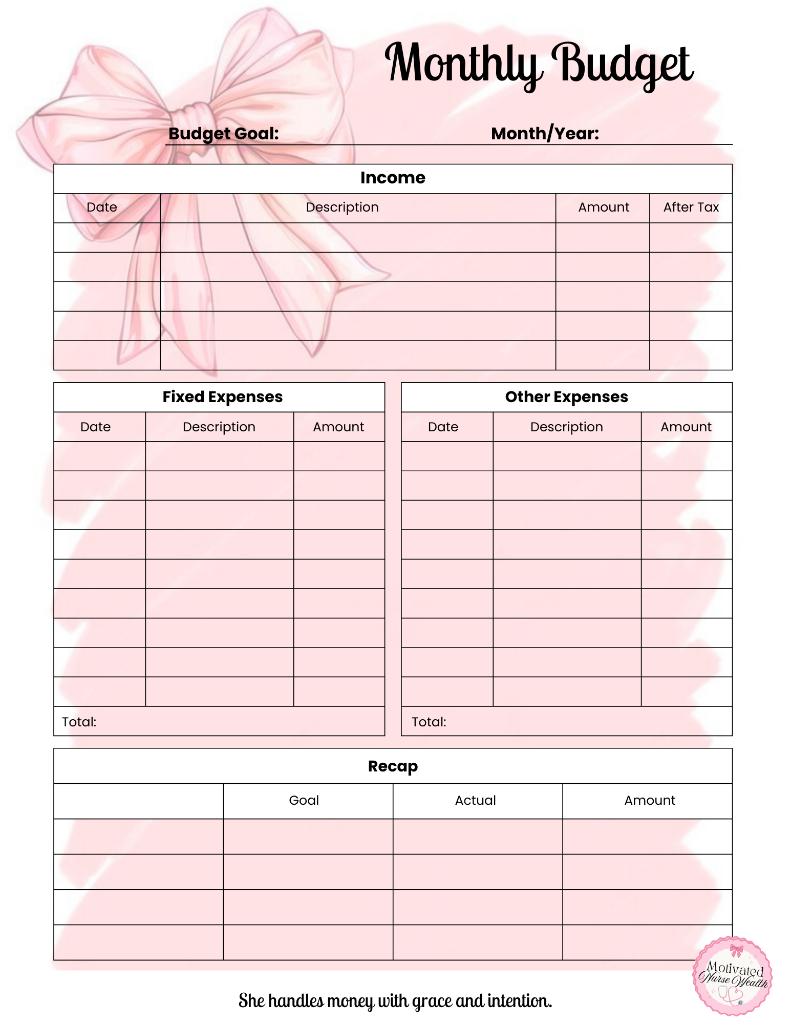 This Monthly Budget Template was designed to help you take control of your finances in a simple, structured way. Whether you're budgeting by paycheck or planning your entire month at once, this printable keeps everything organized and easy to follow.